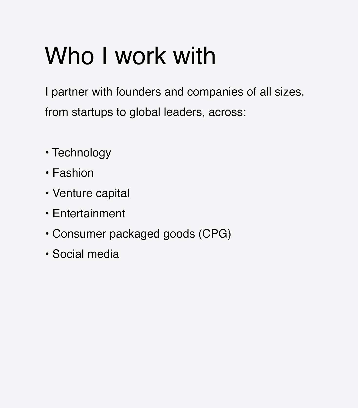 I build brands and digital experiences for today’s most innovative companies and the founders shaping tomorrow.