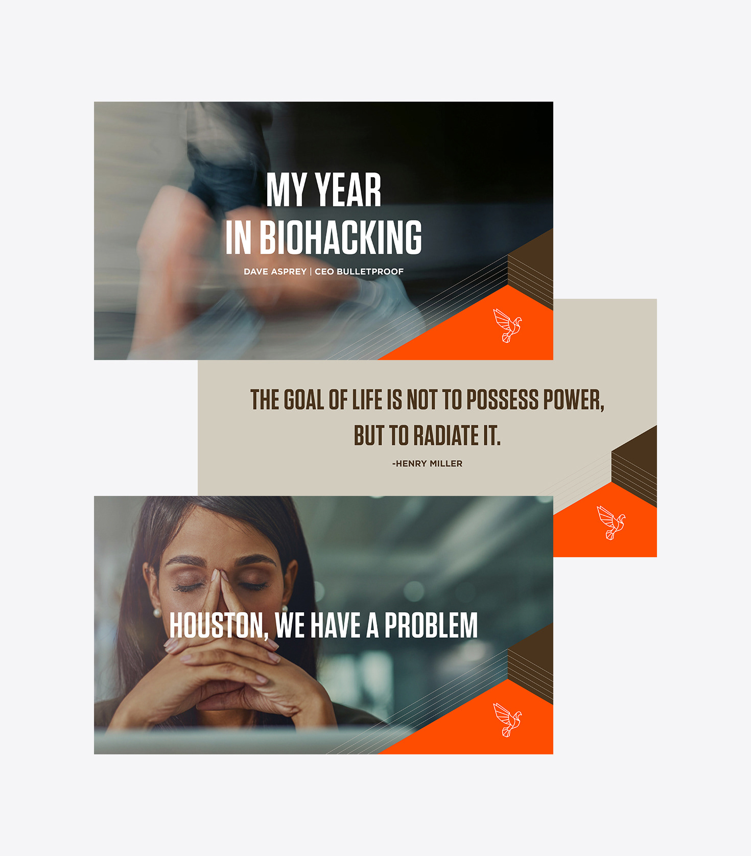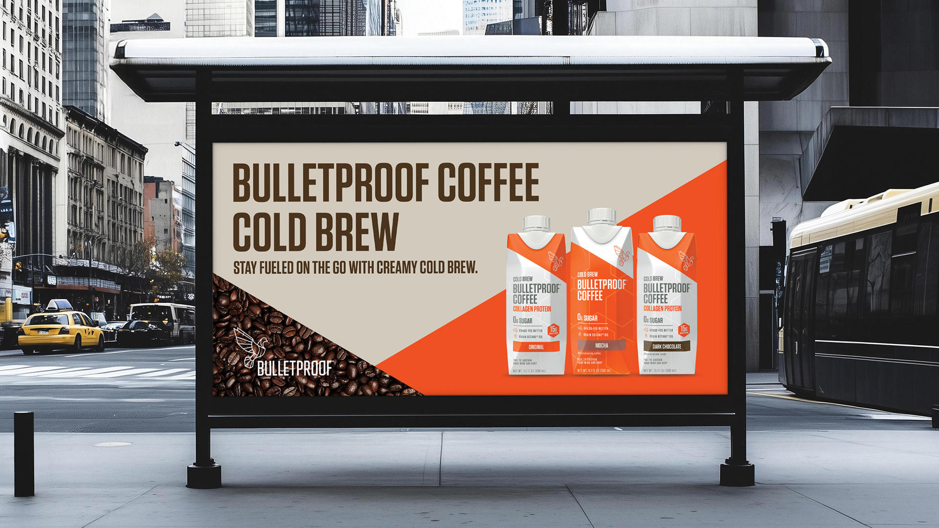 We collaborated with Bulletproof’s in-house team to develop a cohesive suite of marketing and brand collateral. Our work included in-store retail advertising, print collateral, outdoor campaigns, and social media assets. We developed a presentation for Dave Asprey, My Year in Biohacking, and designed conference materials to elevate the brand experience. The project reinforced Bulletproof’s positioning at the intersection of premium coffee, wellness, and performance lifestyle, delivering a consistent, high-impact brand presence across channels.